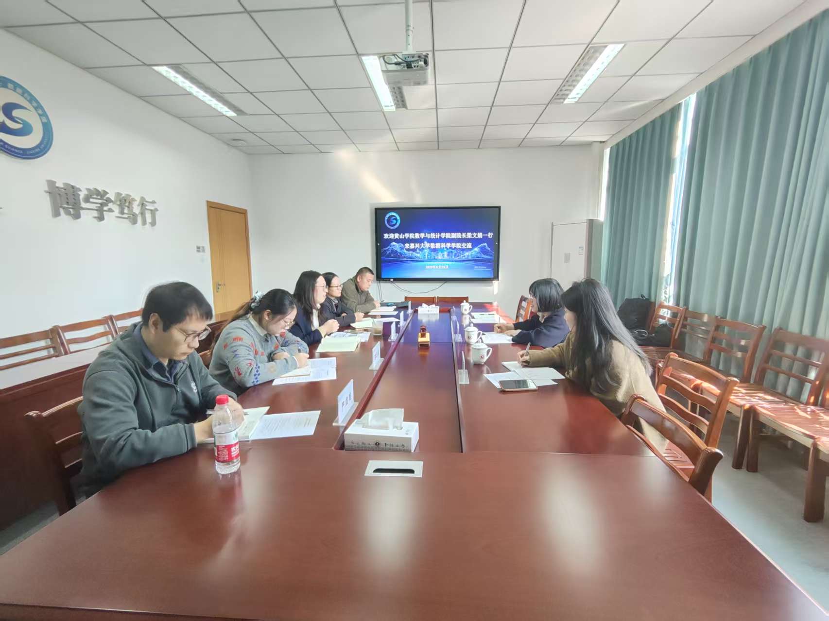 11月19日上午,调研组赴湖州师范学院理学院开展交流。副院长顾海霞及各系主任与调研组进行了座谈。双方围绕2026版人才培养方案修订展开深入交流,重点就数学与应用数学和数据科学与大数据技术专业的课程布局、学期安排、实践教学方式等内容进行了交流。调研组重点了解了该校在课程体系中融入学科竞赛、强化数学建模与统计建模课程支撑的做法,并关注了学院在数据类专业中推动AI技术融入教学、利用专业平台开展实践教学的经验。
