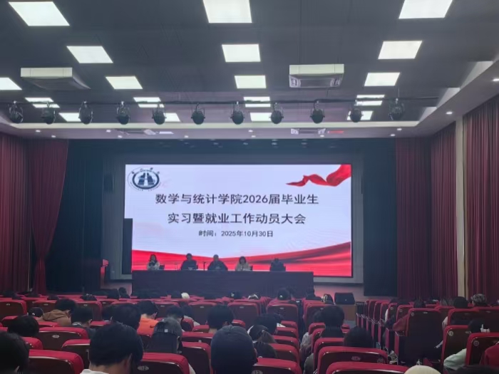 10月30日下午,数学与统计学院召开2026届毕业生实习暨就业工作动员大会,会议由学院党总支副书记方炜主持,学院党总支书记刘双四、副院长梁文娟、教研室主任、毕业班辅导员、实验员及2026届全体毕业生参加。