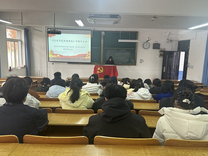 为深入贯彻落实党的二十届四中全会精神,推动学生党员学理论、强党性,12月4日,数学与统计学院学生第一党支部、第二党支部联合开展专题学习会,集中学习《习近平谈治国理政》第五卷有关内容。会议由数学与统计学院学生第一党支部书记鲁韵主持,全体在校学生党员参加。