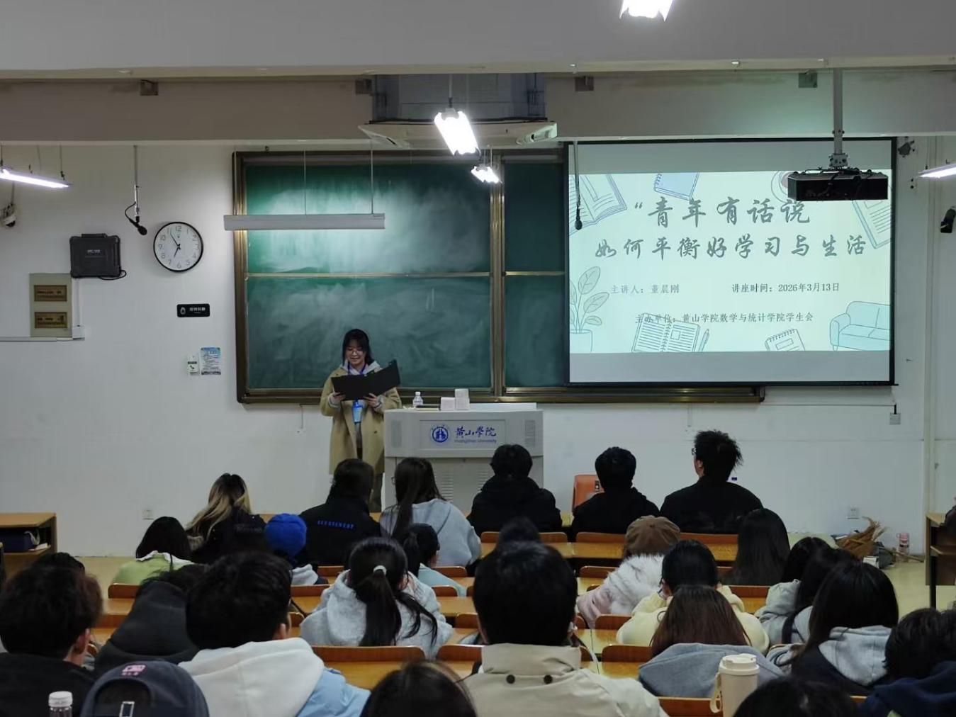 3月13日晚,数学与统计学院于1302教室举办“青年有话说”之如何平衡好学习与生活讲座活动。本次讲座特别邀请学院董晨刚博士担任主讲人。