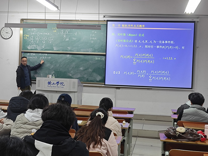 3月23日下午,鲍志晖老师在逸夫楼5101教室主讲《概率论与数理统计》,授课内容为条件概率(贝叶斯公式)。课堂上,鲍老师立足学生认知特点,结合生活实例拆解复杂数学概念,以深入浅出的讲解、生动形象的阐释,将抽象的理论知识转化为可感知、易理解的内容,充分调动学生参与积极性,引导学生主动思考、大胆提问,课堂互动氛围浓厚。