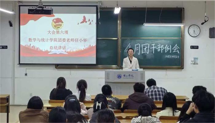 为深入贯彻落实全国两会精神,牢固树立正确政绩观,数学与统计学院团委于4月8日下午在横江校区1301教室召开专题学习部署会。学院团委负责人任小华老师出席会议并作工作指导,全体团学骨干参加会议,共同研学两会精神内涵,部署近期团学重点工作。