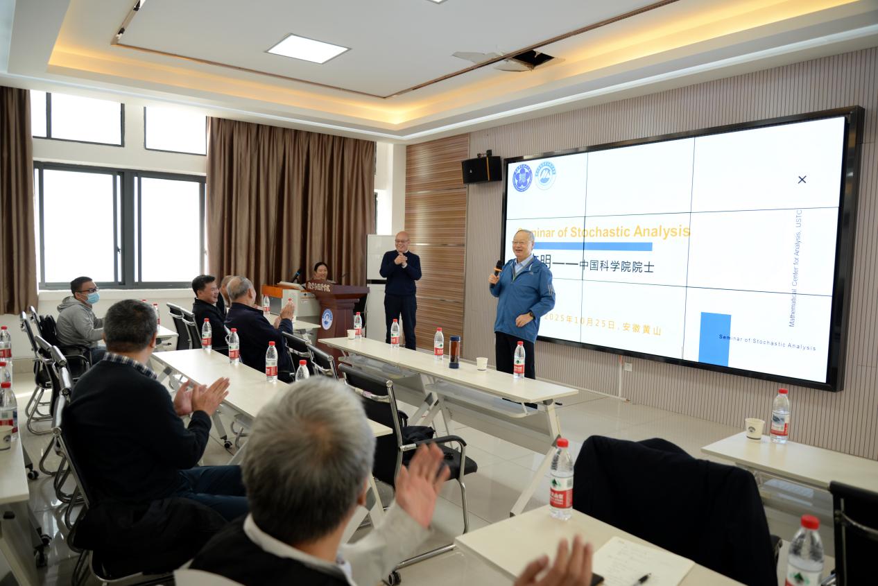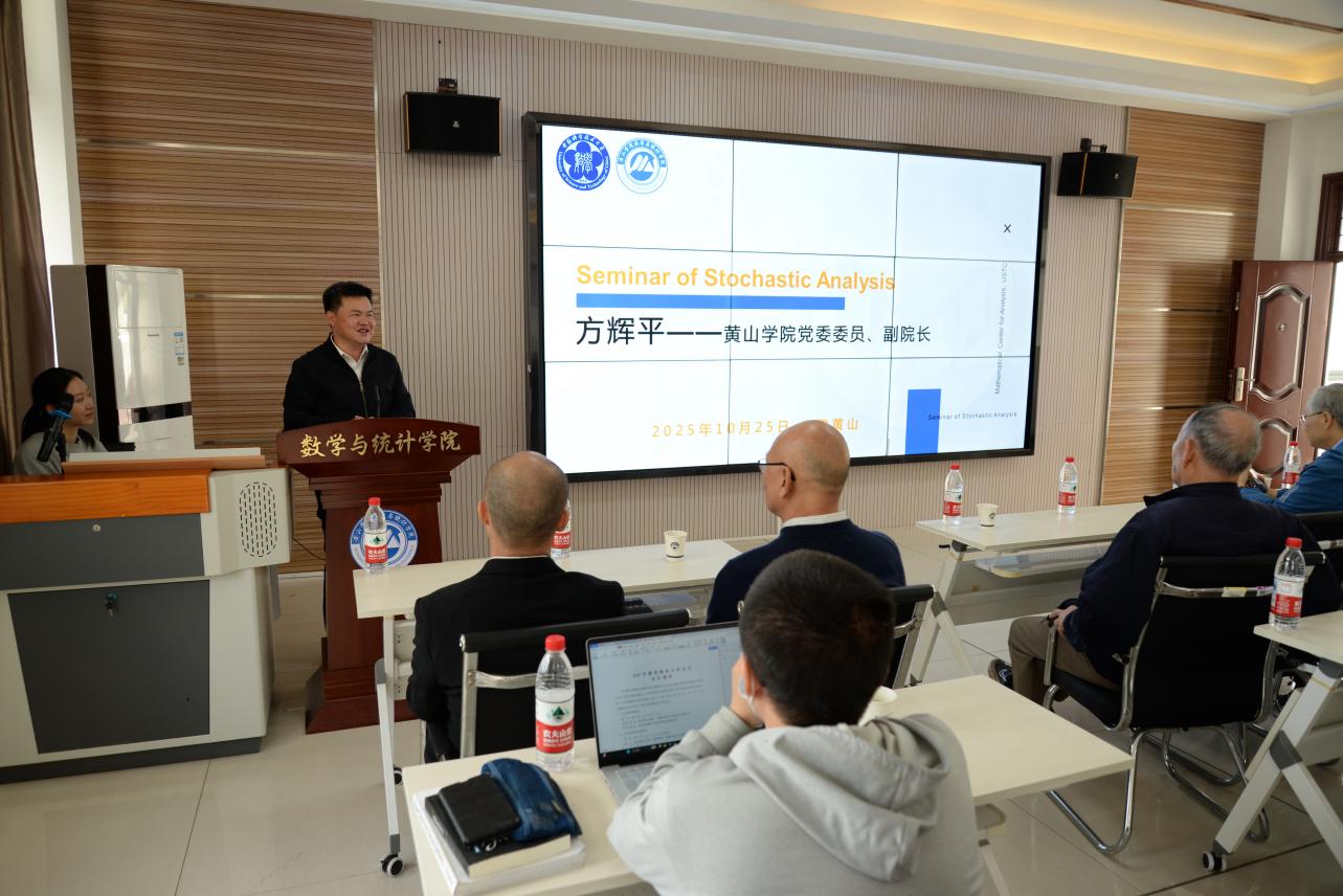 10月24日至27日,由中国科学技术大学数学科学学院主办、黄山学院数学与统计学院承办的2025随机分析会议在我校横江校区隆重召开。本次会议汇聚了中国科学院数学与系统研究院、中国科学技术大学、武汉大学、西安电子科技大学、福建师范大学、江苏师范大学等单位的二十余位专家学者,其中中国科学院数学与系统科学学院研究员马志明院士、严加安院士的出席更是为会议增添了学术分量,众贤齐聚共探随机分析领域前沿。