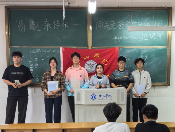 为深入推进党史教育与学风建设深度融合,落实线上促学、以赛促练要求,数学与统计学院易班工作站于4月18日开展了“‘易’起来传承——闯关竞答学党史,铭记初心担使命”特色活动。此次活动旨在以知识闯关为载体,推动党史思政、校规校纪、数学专业知识及数学家精神的学习,强化青年学生理想信念、严谨学风与专业认同。本次活动由数学与统计学院易班工作站成员宋祖锋同学主持。